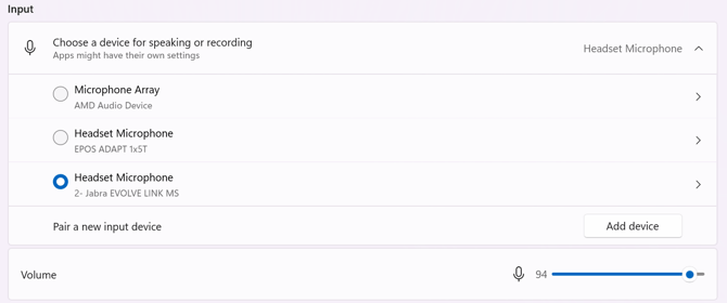 Under 'Input', select your headset from the list