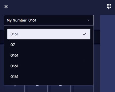 If you have more than one number associated with your account, you can change numbers from the dialler menu, as shown below.